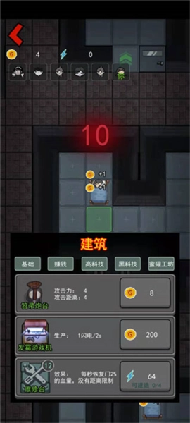 最应该优先升级的经济类建筑,是主要的经济来源,也是前期仅有的经济来源,它和门的等级相关联,每提升一级,每秒获得的金钱就会翻倍。