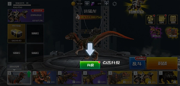 8、此外,玩家还能在首页的恐龙选择界面自由挑选想要出战的恐龙,也可以对心仪的恐龙进行升级操作,升级后的恐龙会拥有更强大的战斗力。