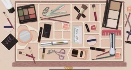 1、首先将每一个化妆品放到相应的格子当中。