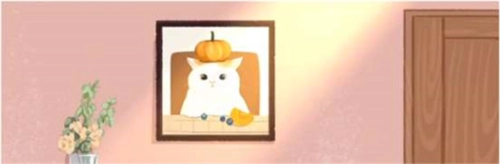 3、最后将小猫照片挂到墙上就可以了。