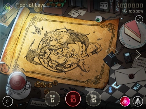 最下面一行:左下角是返回键,中间为该曲目的难度选择区域,其中的数字代表将该曲目达成MM且TP100的难度系数(并非仅获得一个MM的难度)。通常情况下,曲目会设置三个难度等级,仅有少数曲目设有第四个难度。