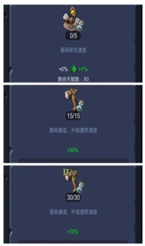 绿色部落:a、建造时间缩短5%;b、可定期获取大自然的资源馈赠