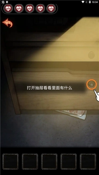 4、拉开抽屉查看内部情况,发现有一截钥匙断在里面,钥匙柄却不见了,得找个工具来打开这个抽屉,去寻找能打开抽屉的道具吧;