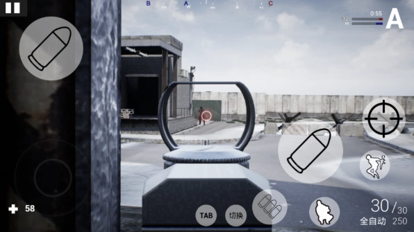 2.优化操作设计,左手负责控制方向轮盘,右手则用于操作射击瞄准与动作按键