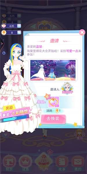 海达王子邀请你一同观赏烟火大会,记得要穿上华丽的礼服哦~除了衣橱里琳琅满目的套装,你还能亲手设计制作——无论是不同风格的裙装、绚丽多彩的颜料,还是创意十足的贴纸与精致别致的配饰,都能任你搭配,快来打造出专属于你的完美礼服吧!