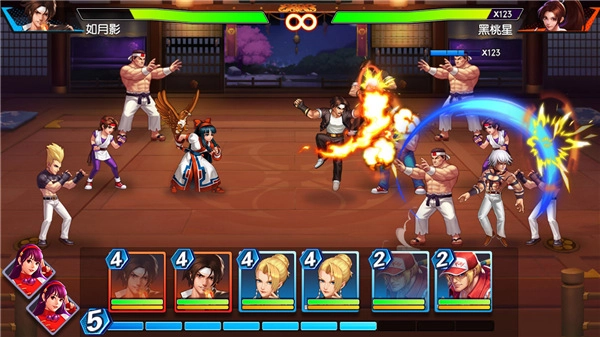 在《拳魂觉醒》的这一部里,登场角色依旧是拳皇系列中的经典角色,但战斗模式有所调整,采用6V6的回合制玩法。玩家拥有六个角色位置,从一号位到六号位,其中1、2、3号位为前排(竖排排列),4、5、6号位为后排。在阵容搭配方面,前排推荐安排输出型或控制型角色;后排则适合放置输出能力较低的角色,以及各类辅助角色;至于坦克角色,建议放在3号或5号位置来承担伤害。