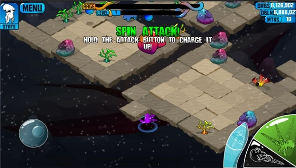 1、主角是长相奇特的小魔法人Quadropus,主场景设定在常见的地下城,但并未采用惯用的黑暗风格,而是选择了清新的Q版卡通风格,带来全新体验。这样的设计显然是为了与以往的地下城题材形成区别,从视觉层面营造出独特的新意。