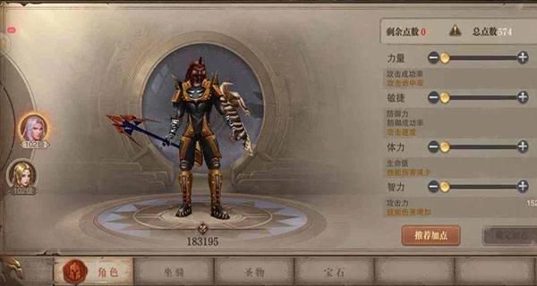 2、在中战士的搭配里,力量宝石、体力宝石和防御宝石是最优选择,毕竟战士是顶在队伍前排的抗伤职业,需要足够的生命值与防御能力,所以我们会优先考虑体力宝石和防御宝石——体力宝石带来的体力属性能够提升战士的生命值,让战士具备更强的坦度。