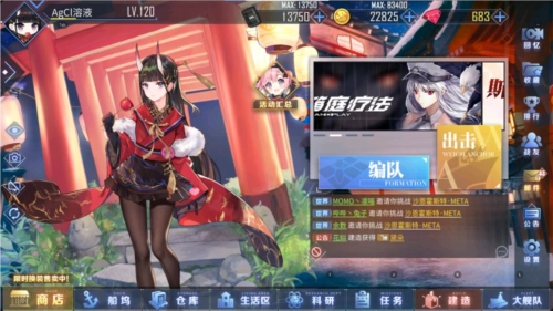 ②出击:主线及各类关卡。