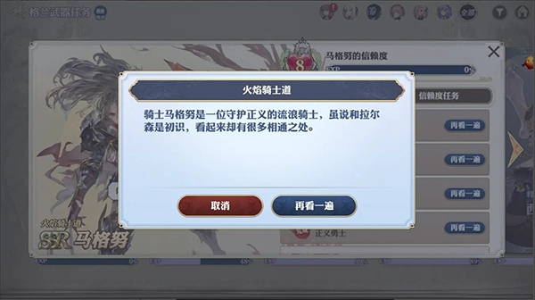 3、依据达成的好感度能够解锁格兰武器任务,完成过1次的格兰武器任务在任何时候都能再次查看。