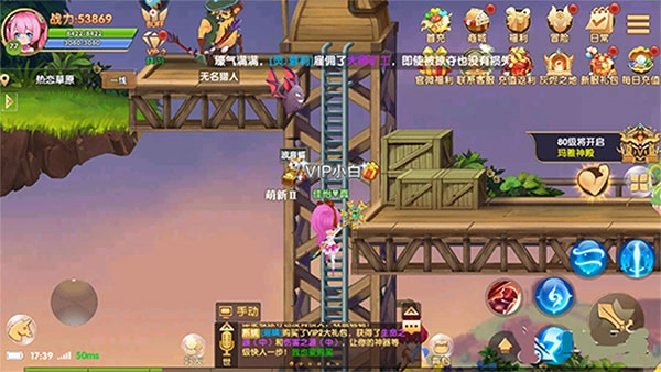 彩虹物语满V版是一款2D横版卷轴格斗ARPG,这个版本福利满满,不用充值就能轻松拥有满级VIP特权,还有超多精彩好礼等你领取!玩家将在泰尔大陆开启奇妙的冒险之旅,游戏里有酒馆闯荡、收集宝藏等新奇有趣的开放玩法,让你时刻保持新鲜感。它的画风清新,角色都十分可爱,不肝不氪也能玩得舒服自在。
