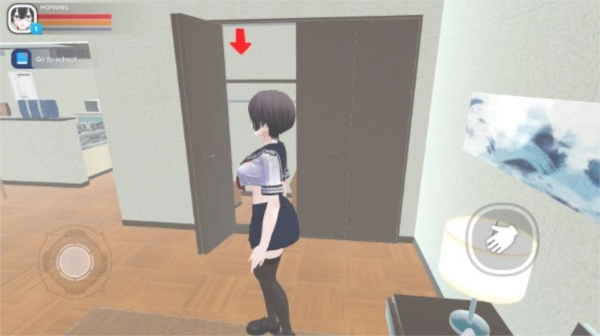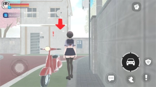 4、游戏内设有指引系统,玩家需操控角色依照提示进行移动,例如跟随红色箭头前往学校。