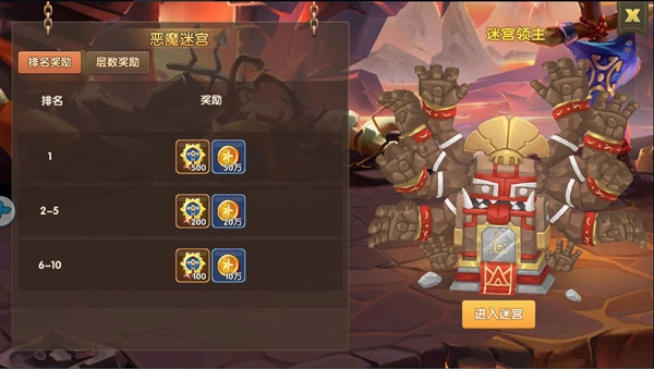 除了刚才提到的最终BOSS专属奖励外,恶魔迷宫还设有排名奖励和层数奖励两种类型的奖励。其中,排名奖励是依据冒险家们爬到迷宫第八层所耗费的总时长来计算的,奖励十分丰厚,各位冒险家可千万不要错过呀。