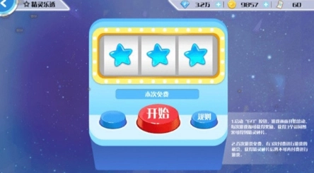 精灵乐透玩法如下:点击开始按钮后机器启动转动,当它停止转动时,若三个图案完全相同,即可获取精灵碎片。