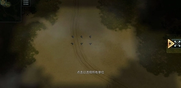 2、接下来体验教学关卡,点击右侧按钮就能选中己方的全部单位。