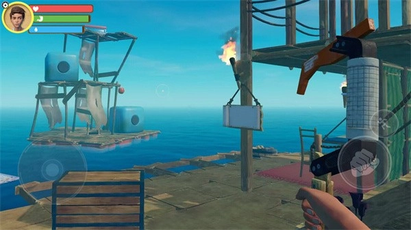 2、在木筏上开启求生之旅,通过收集木板搭建属于自己的家园。