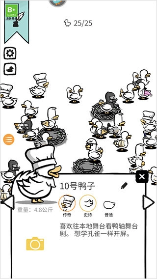 1、经过持续的探索与培养,你会发现更多妙趣横生的鸭子角色,感受一个满是创意的鸭子世界。