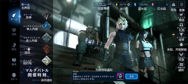 目前已上线FF7、CCFF7、FF7FS(居然没有地狱犬和危机前夕???)。完成剧情后所有角色都能获取经验,且不消耗体力。剧情章节将随运营进度逐步解锁,还请优先推进故事模式。