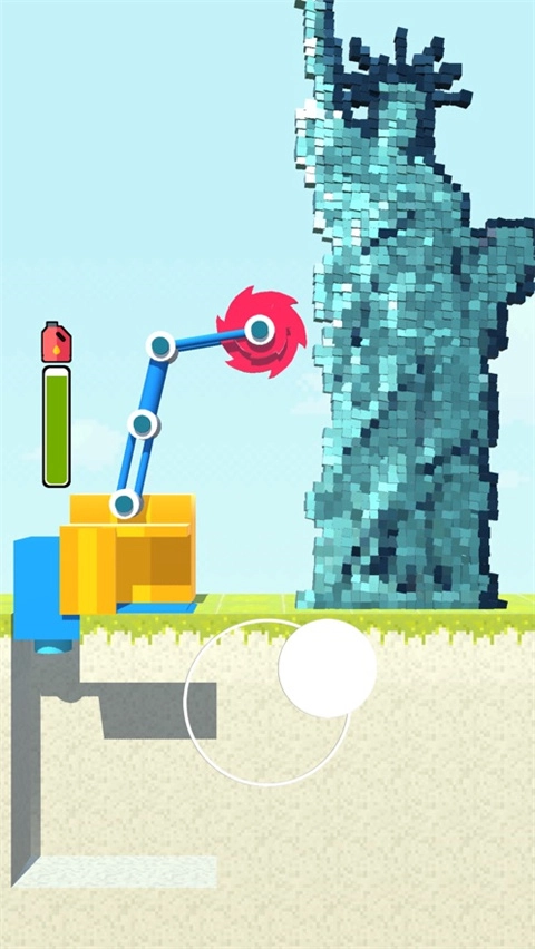 2、拖动下方的虚拟轮盘,即可操控拆迁机器拆除右侧的建筑。
