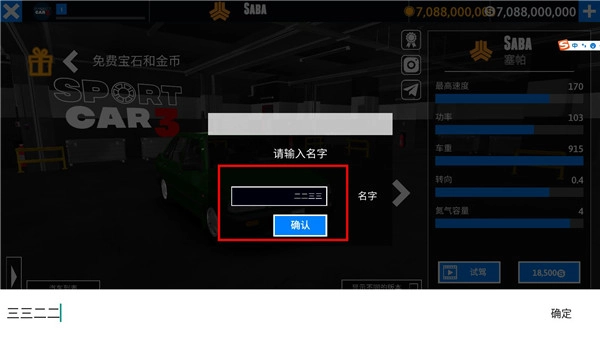 1、进入后,首先为自己取一个响亮的名字吧,如图所示:即可购买车辆