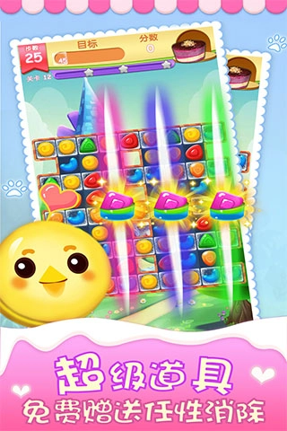 3、多样色彩的糖果为玩家带来了更新鲜的挑战,游戏内玩法丰富多样,还有各种悦耳的音乐陪伴玩家闯关。