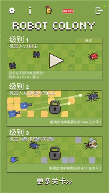 1、接着进入《机器人殖民地》,程序里有多种难度和模式可供选择,您可以依据自己的实际情况挑选合适的级别来开启挑战。