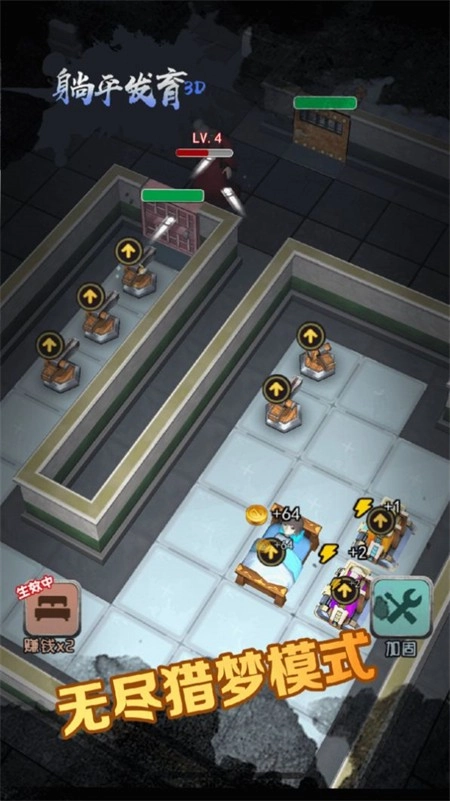 《躺平发育3D》是一款轻量级策略守城对战游戏,玩法与热门游戏“猛鬼宿舍”相近,对局中玩家将分为人类和梦魇两个阵营。人类阵营需要建造各类机关、布置守卫装备、提升房门等级,以此抵御梦魇的进攻。玩家可以自由选择扮演猎手或幸存者,感兴趣的朋友不妨来体验一下!