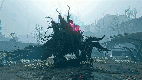 上位者孽生妖树寄生于巨楔BL155E内部的阿米特级裂隙空间。现有目击记录显示,该裂隙空间是2046年无故消失的萨莫维尔镇遗址的异空间变体。空间内部整体氛围宁静,局部区域偶尔会出现重力场减弱的情况。上位者孽生妖树的行动相对迟缓,不过其星尘能量能够汇聚成极具攻击性的类藤蔓组织。需特别留意它背部的人形部分。