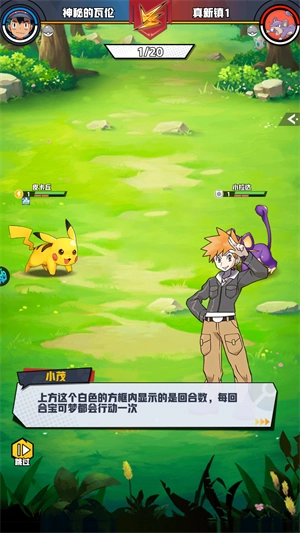 2、新手进入游戏后,可以先体验战斗玩法,一键让自己拥有的精灵宝贝上阵就能进行对线作战;界面上方会显示回合数,需要在规定的回合内击败敌人。前期对手的难度不高,很适合新手用来练习和熟悉操作。
