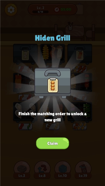 2、时间限制:每个关卡都设有明确的倒计时,玩家需要在规定时间内,依据关卡给出的要求(比如烤制特定种类或数量的烤串、防止食材烤焦、使用特殊道具等),迅速应对各种情况(例如及时翻转烤串、移走烤好的串、补充食材等),要是超时没能完成目标,就需要重新挑战。