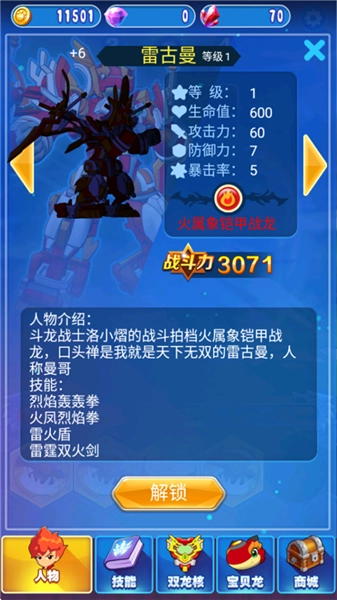 3、多维养成体系:以「斗龙进化树」为核心玩法,包含强化、升星、改造三条独立成长路径。解锁觉醒形态需要收集5个同名星核,觉醒后会额外获得跨属性加成buff。