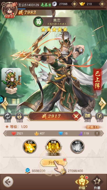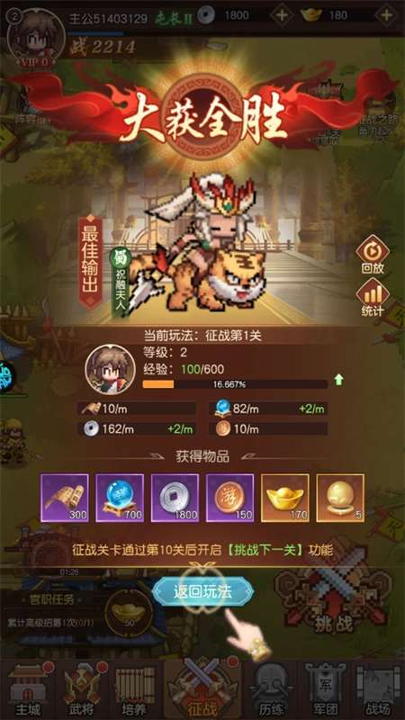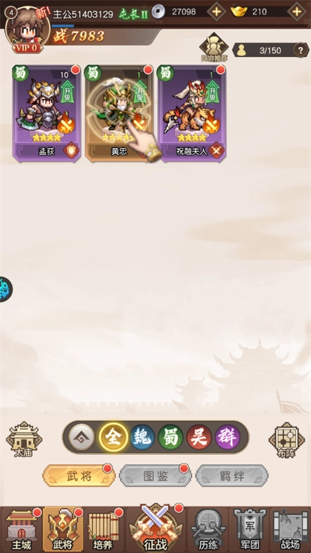5、武将升级强化:在武将界面中对武将执行升级操作,升级后武将的威力将显著增强,战斗能力也会得到提升。