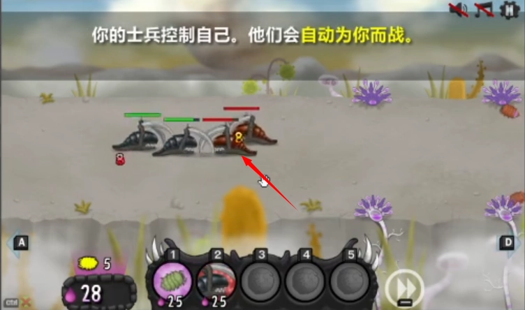 4、你的士兵会自动战斗,你只需负责放置士兵就行。