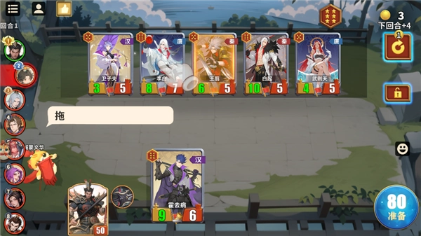 在游戏前期,建议优先选用“汉”或“唐”阵营的低费英雄,这样能更平稳地度过前期阶段。