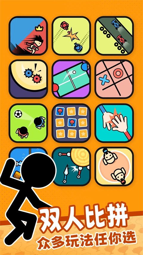 采用卡通风格的画面设计,搭配简洁明快的UI界面。支持双人共享屏幕进行实时对抗,以此增强互动的趣味性与操作的直观性。