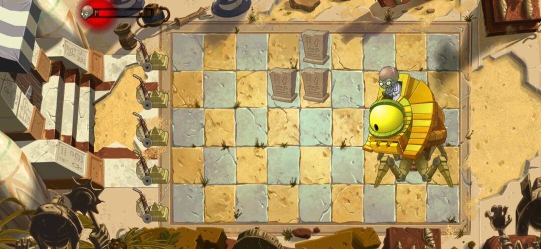 埃及第15关是玩家首次遭遇僵王的关卡,能看到僵王行动十分灵活,植物很难对它造成有效攻击。