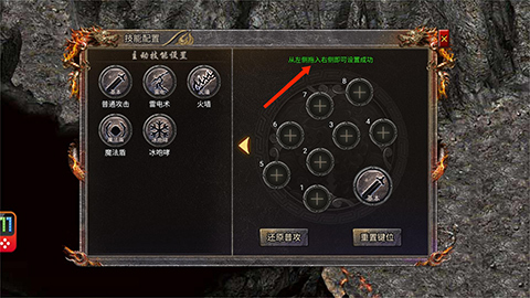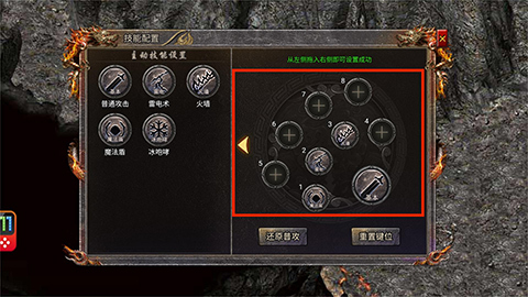 2、进入技能配置界面后,把左侧所需的技能拖动到右侧对应的数字框里就可以了。
