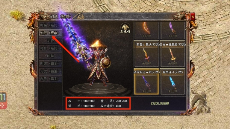 3、关于幻武:带有破界无边且附加攻速属性的幻武一定要获取,攻速提升后打怪效率会非常高。