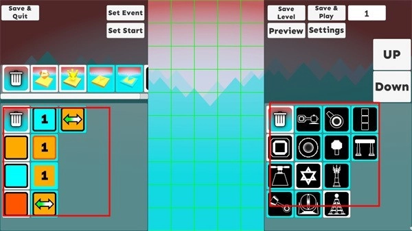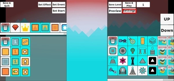3、关卡铺设完成后,点击右上角的settings,会弹出一个设置栏。