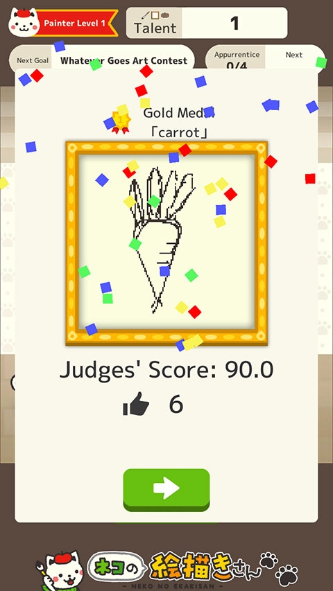 3、把您的作品提交至比赛!您的作品将由来自全球各地的其他猫咪画家进行评判!