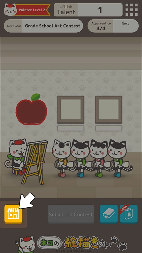 1、首先,玩家扮演的小猫画家要对其他画家的作品进行指导,通过【点击其他画家】来发起挑战。