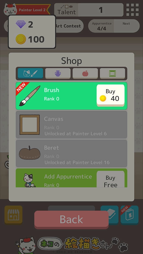 猫画家为玩家准备了丰富多样的道具与工具;玩家能够通过购买或完成任务解锁新的画笔、颜料和画布,以此扩充自己的绘画工具箱;这些道具和工具不仅能增强玩家的创作能力,还能让作品呈现出更多细节与特效。