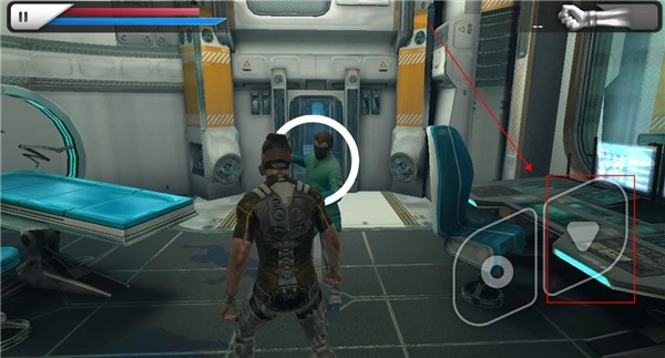 3、我们继续往前走,走到某个地方时会直接触发剧情,手镯里的布赖恩会让我们赶紧逃离这里。