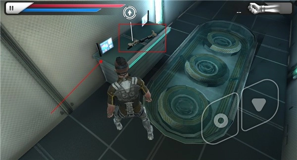 7、推开大门进入后,径直往前走就能获得我们的第一把武器——一个机械腿,点击右上角就能切换武器。