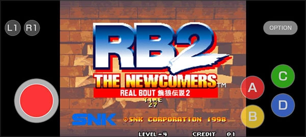 1、首先打开《饿狼传说2》,点击左上角的L1键投币,再点击右侧的A按键进入游戏。