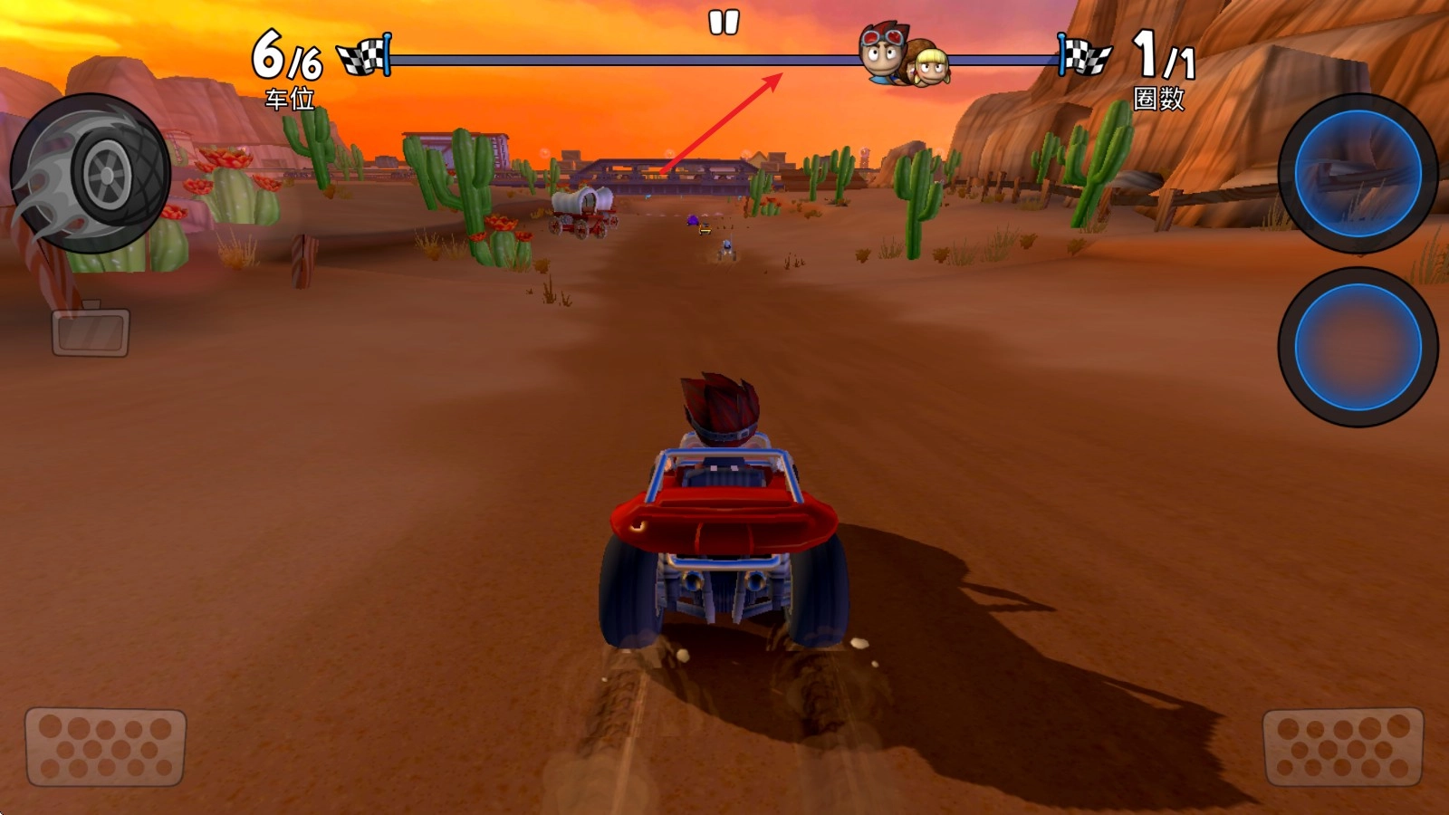 1、比赛开始后,赛车会自动前进,点击屏幕左右两侧就能转向。