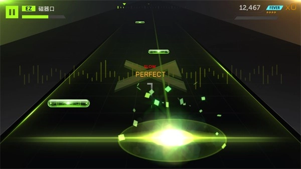 4、游戏正式开始后,玩家需在上方的音符移动至底部线条处时点击屏幕以获取分数,连击次数越多,所能获得的分数加成便越高。