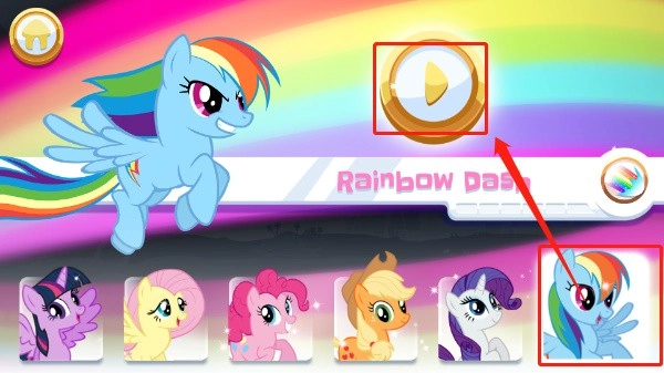 2、进入小马宝莉彩虹跑将后,需先选择要进行操作的小马驹。