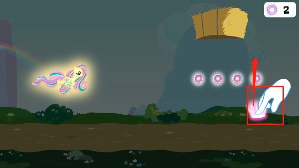 6、拾取彩虹能量后,玩家可进入飞行状态,此时需要通过向上或向下滑动屏幕来拾取小马能量,以获取更多得分。