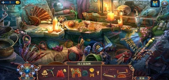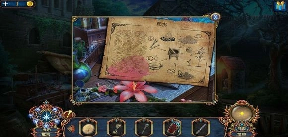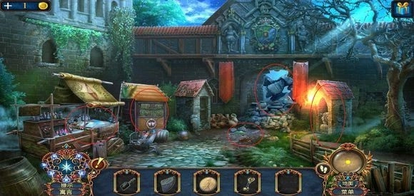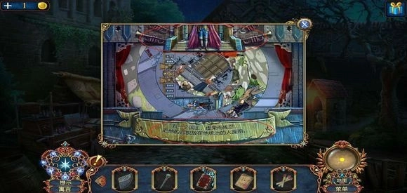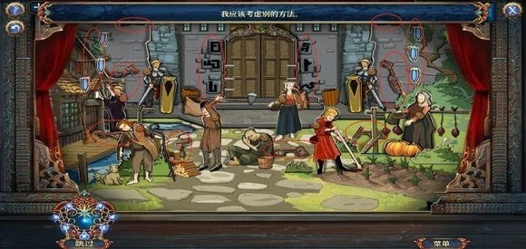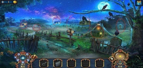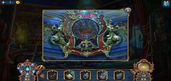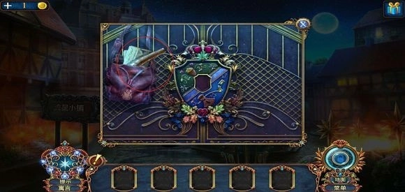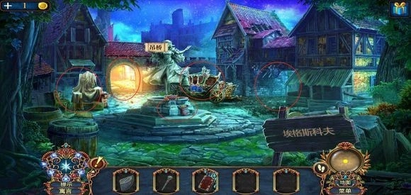 走进屋子,右侧壁炉处拾取火的符号,再用铲子清理炉灰,从中找到框饰。左侧地面上,捡起火柴盒和小人。离开屋子后,在水车上使用“火”符号打开柜子,获取凤凰装饰。